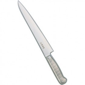 堺 南海(オールステンレス一体型料理庖丁)特長と品質●刀身(モリブデンバナジウム鋼)と柄の部分(18-8,ステン  レス)を一体化した事により、洗いやすくハンドルが  腐ったり抜ける心配がなく衛生的です。●刀身が柄の最後部まで差し込んであり折れ等の心配が  ありません。※包丁の表示サイズは、すべて刃渡り寸法となっております。